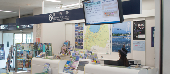 富山きときと空港で困ったとき、お手伝いが必要な場合は1F到着ロビーの案内所へお越しください。